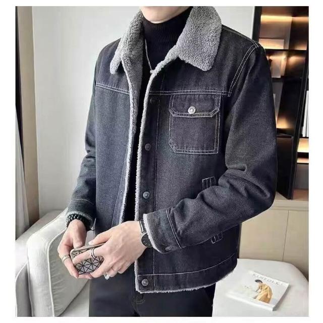 男士牛仔外套加絨加厚冬款羊羔毛絨2025新款韓版修身翻領休閑夾克