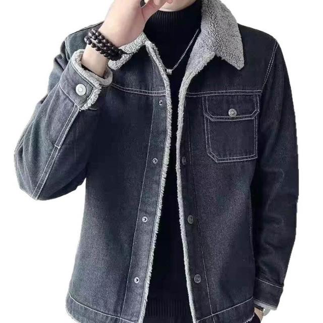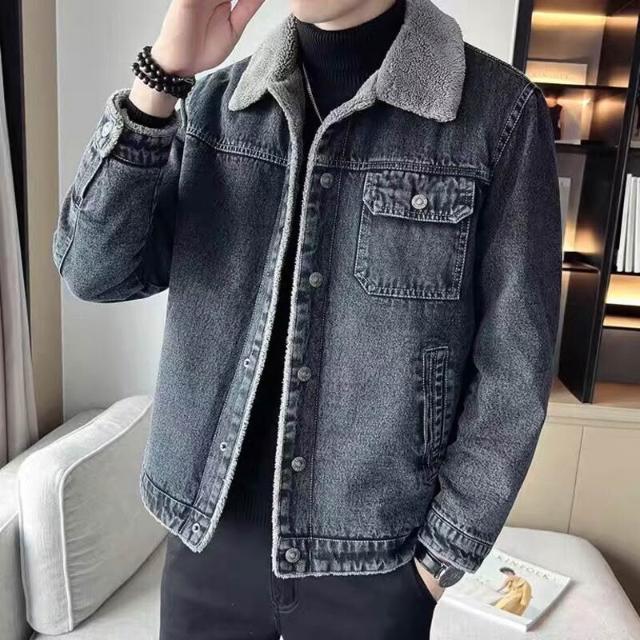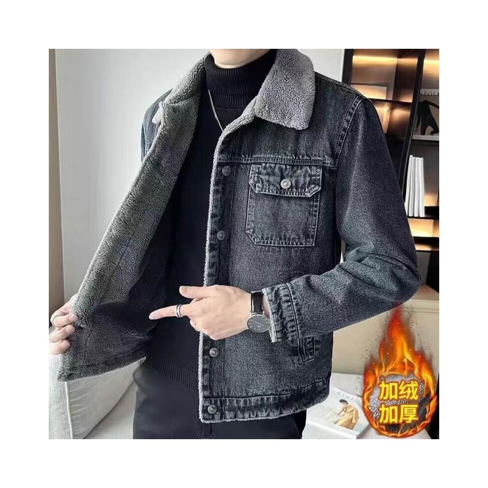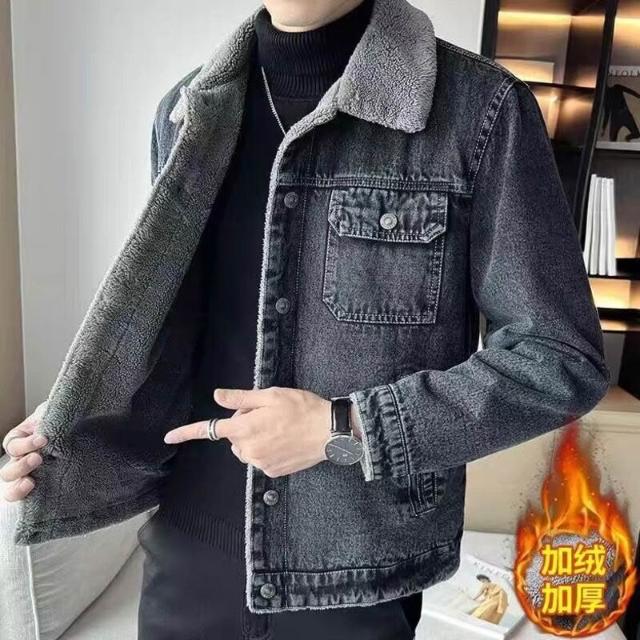 男士牛仔外套加絨加厚冬款羊羔毛絨2025新款韓版修身翻領休閑夾克