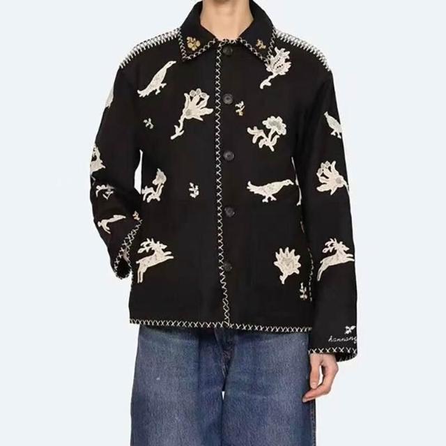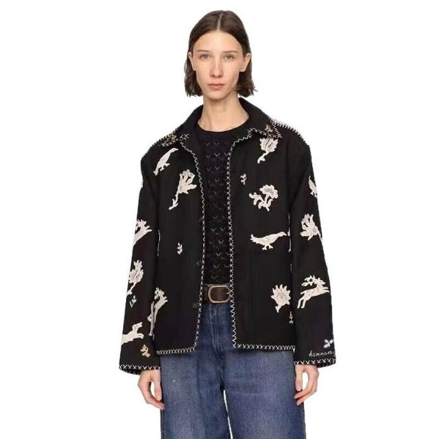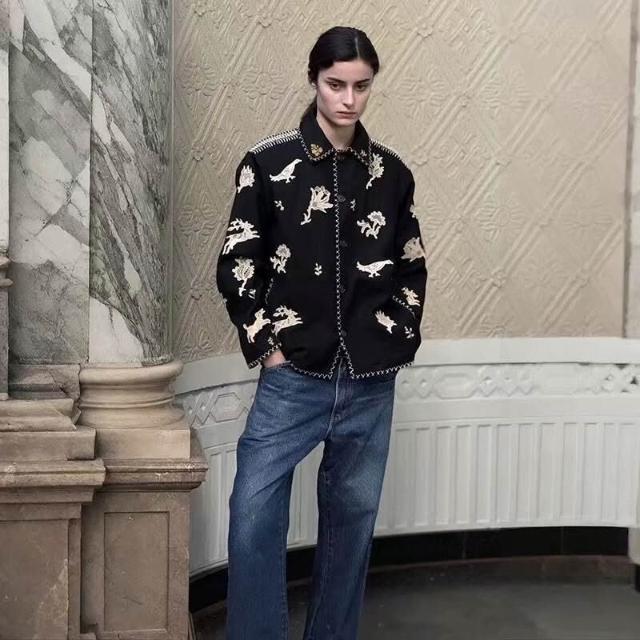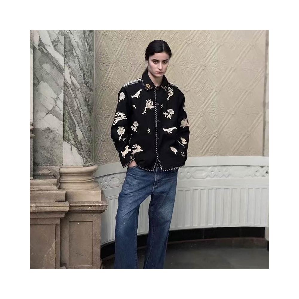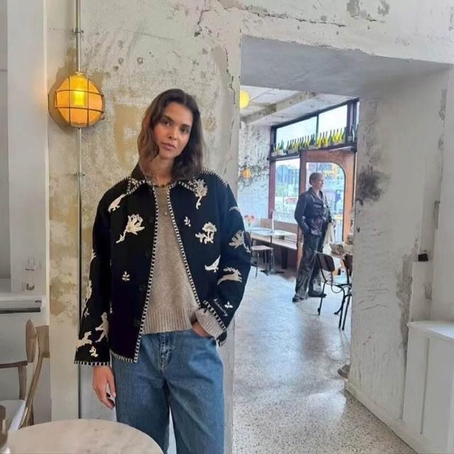 法式毛呢外套女高級感秋冬新款羊毛混紡編織花邊翻領刺繡夾克上衣