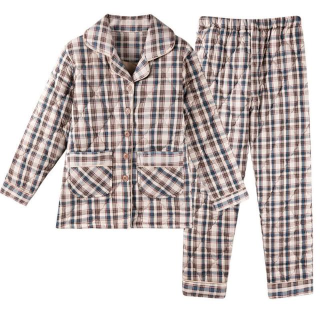 睡衣女冬季純棉三層夾棉加厚保暖秋冬全棉中年冬款棉襖家居服套裝