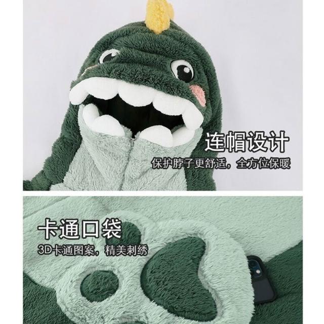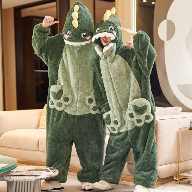 情侶連體睡衣女秋冬季珊瑚絨加厚動物卡通恐龍成人男款冬天家居服