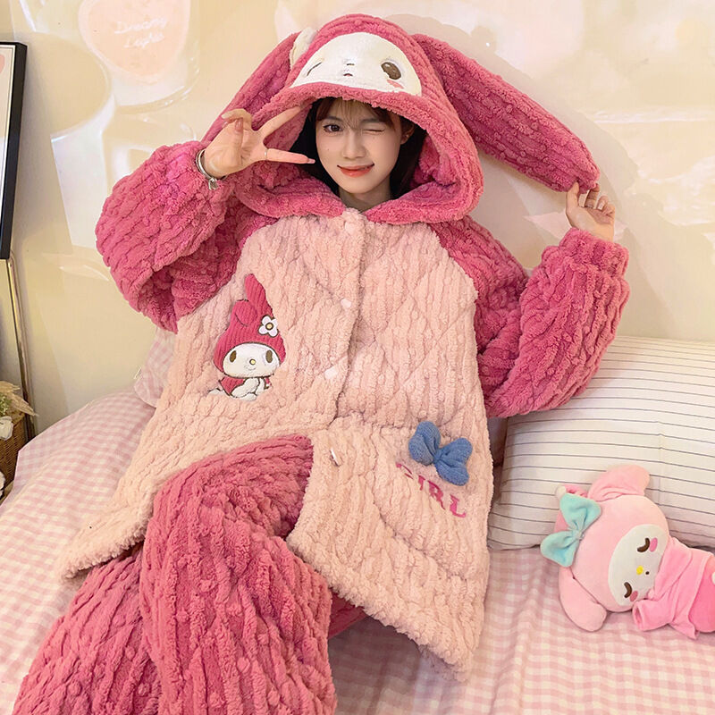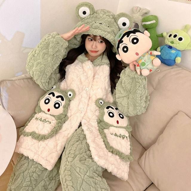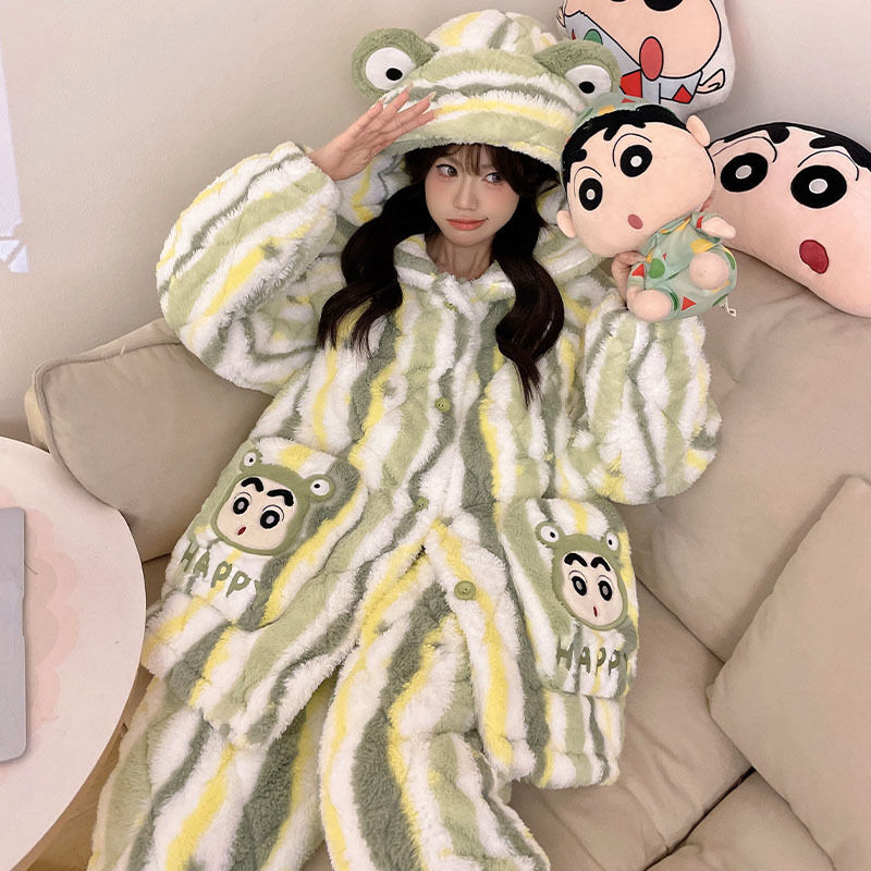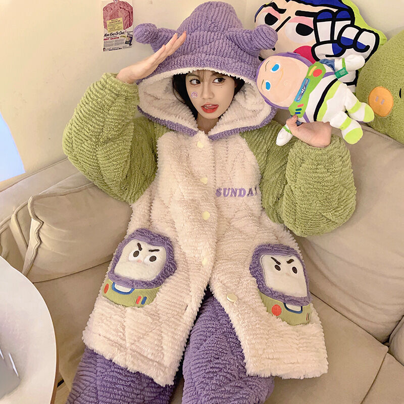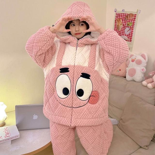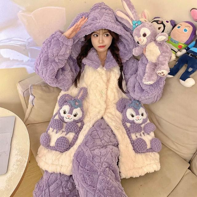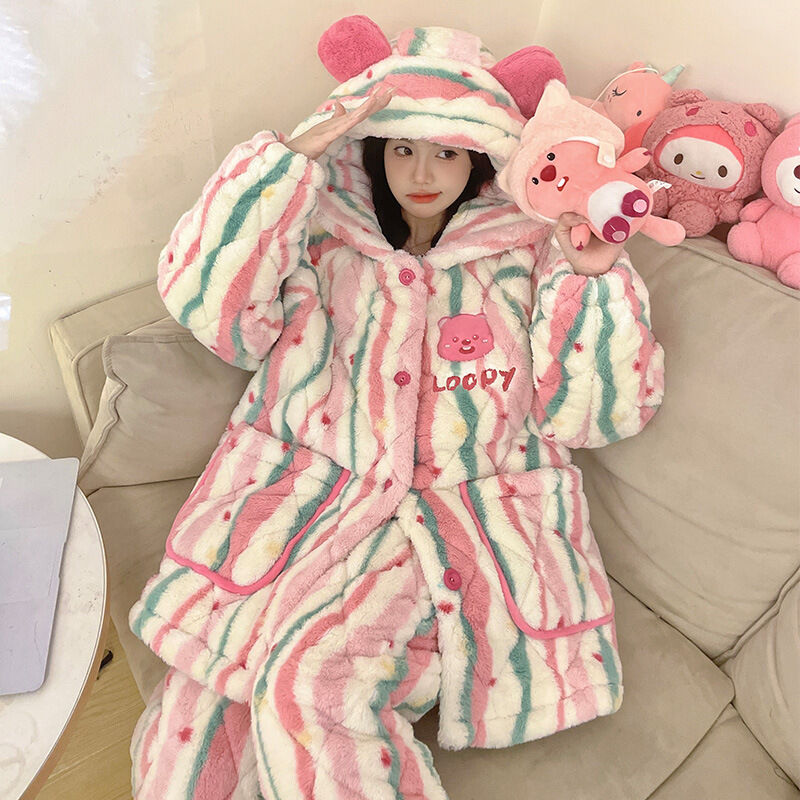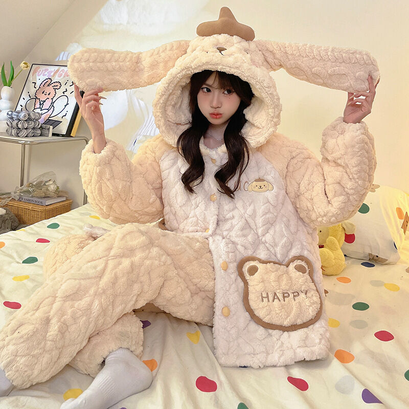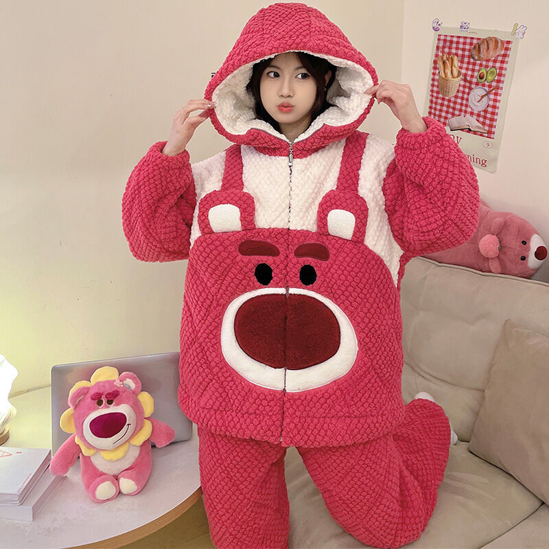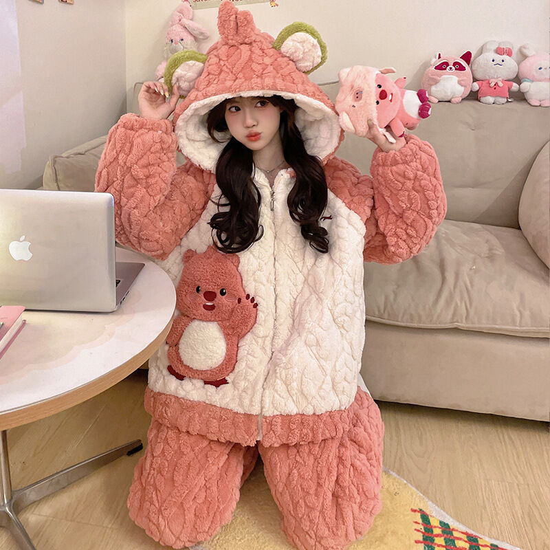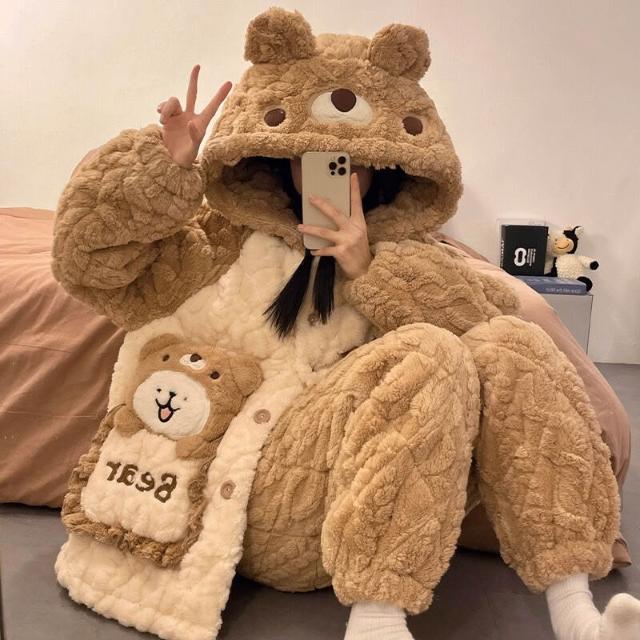 可愛小熊睡衣 睡衣女 連帽保暖居家服 家居服套裝 情侶居家服