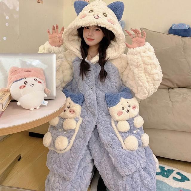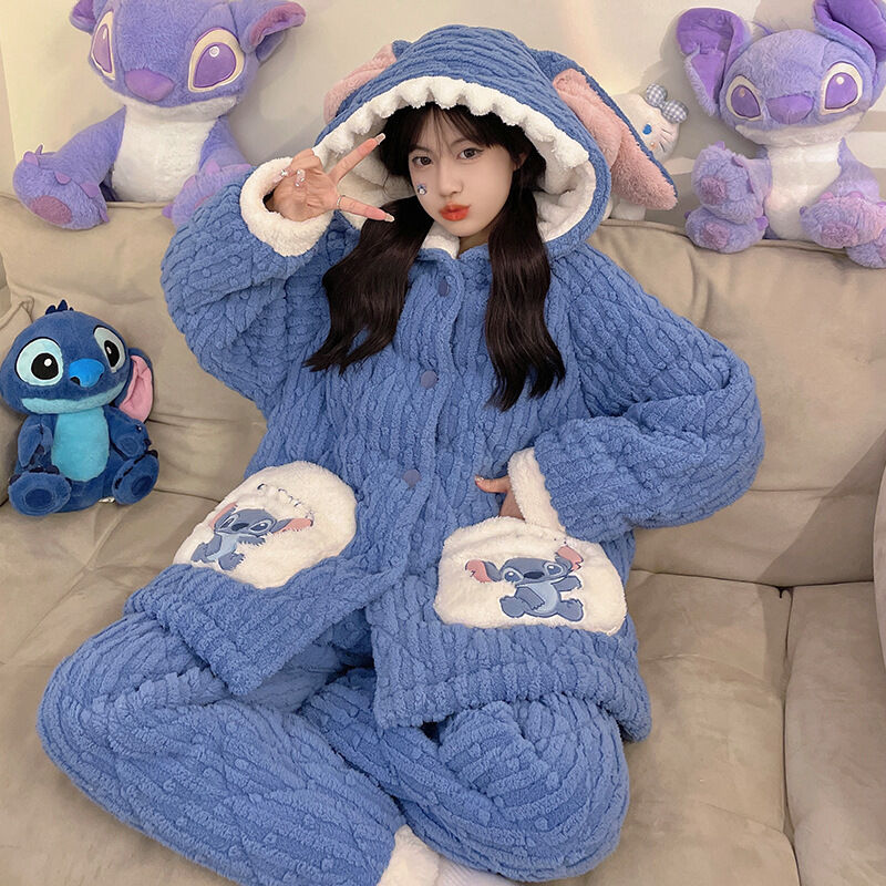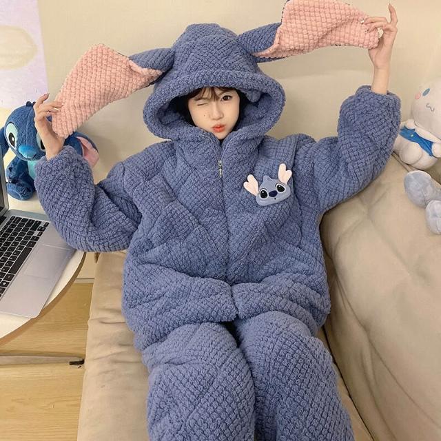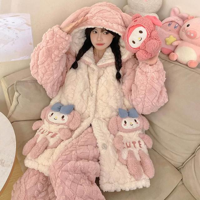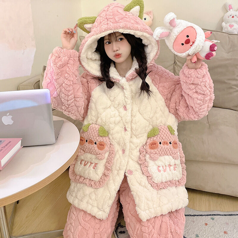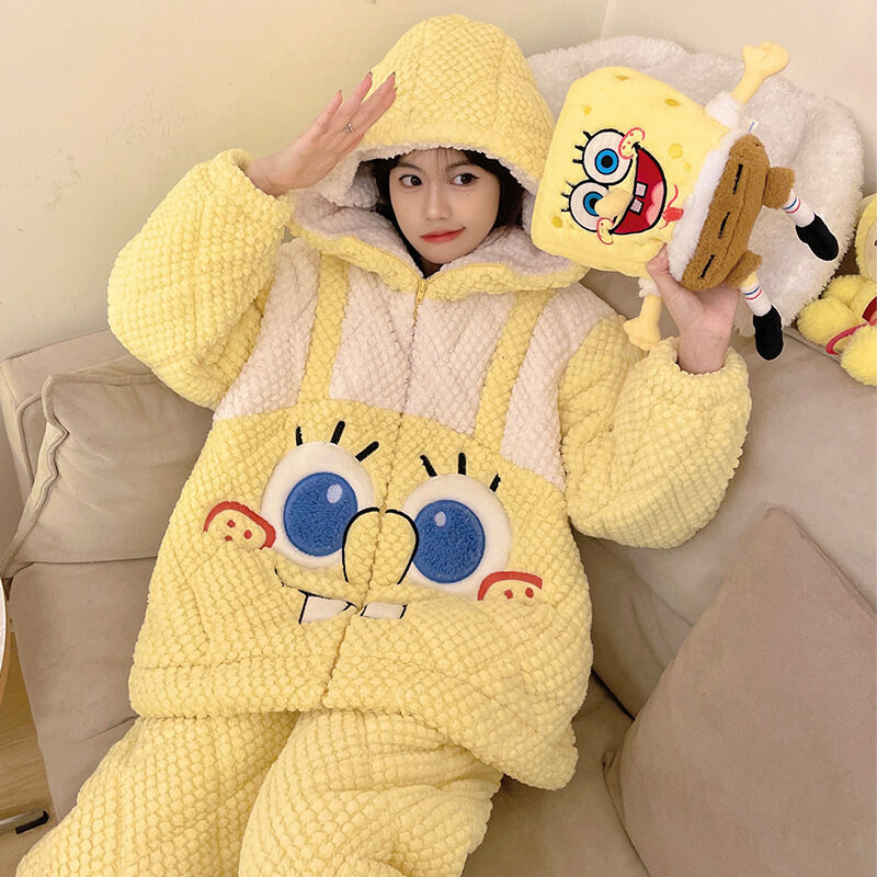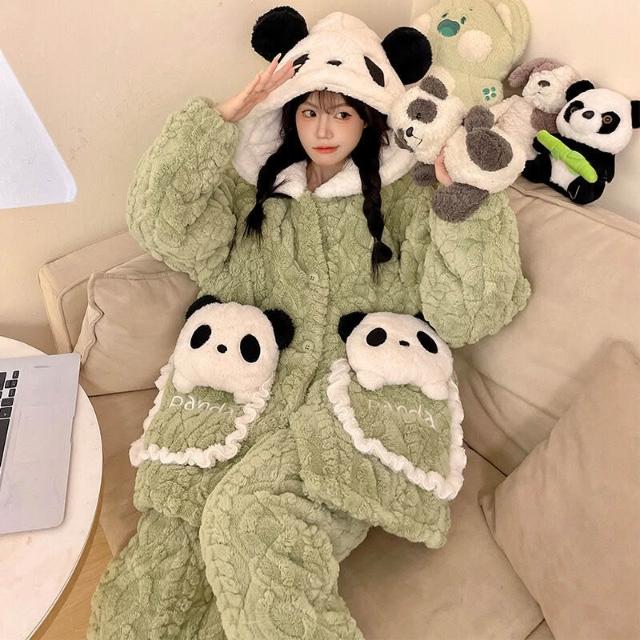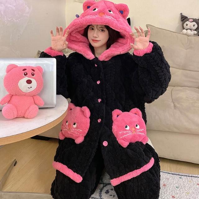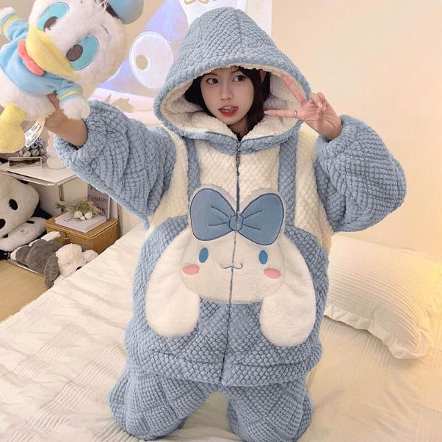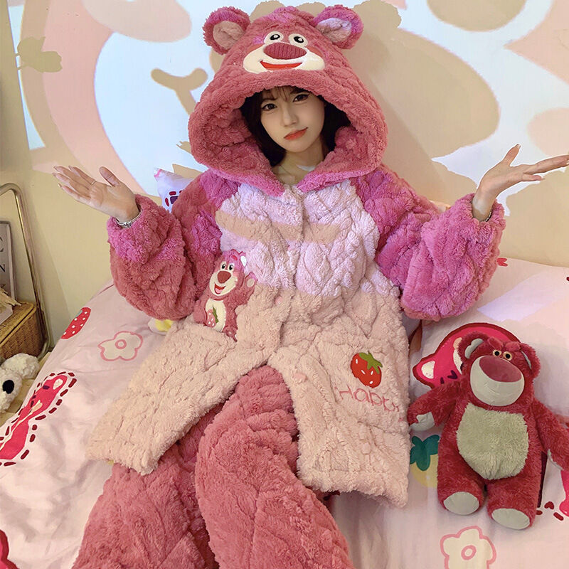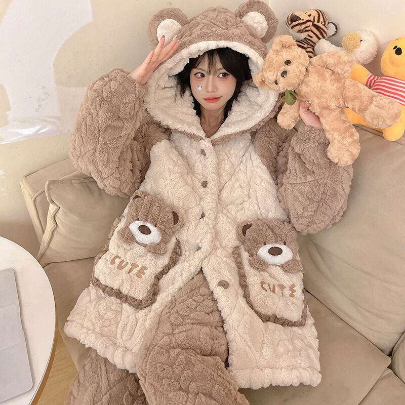 可愛小熊睡衣 睡衣女 連帽保暖居家服 家居服套裝 情侶居家服