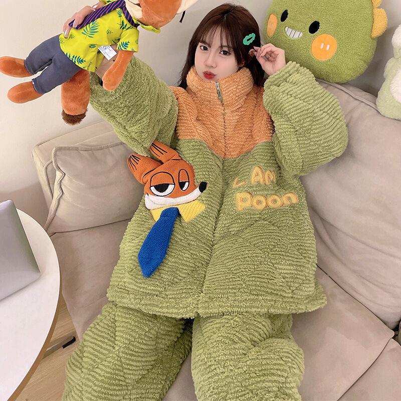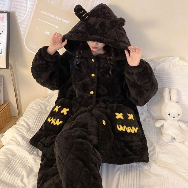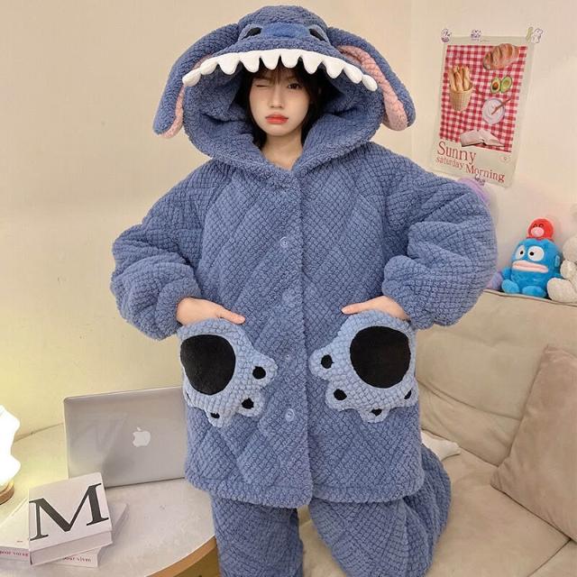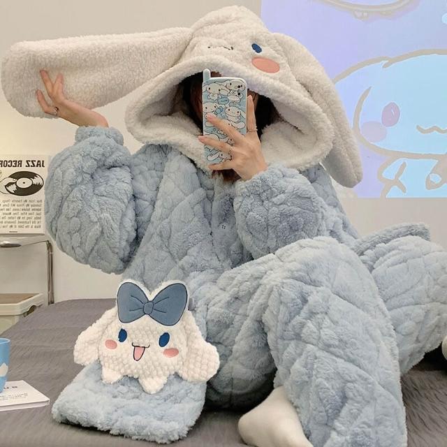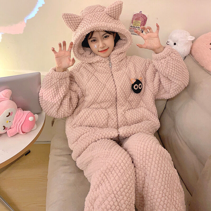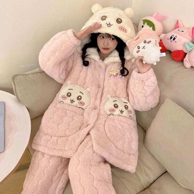 可愛小熊睡衣 睡衣女 連帽保暖居家服 家居服套裝 情侶居家服
