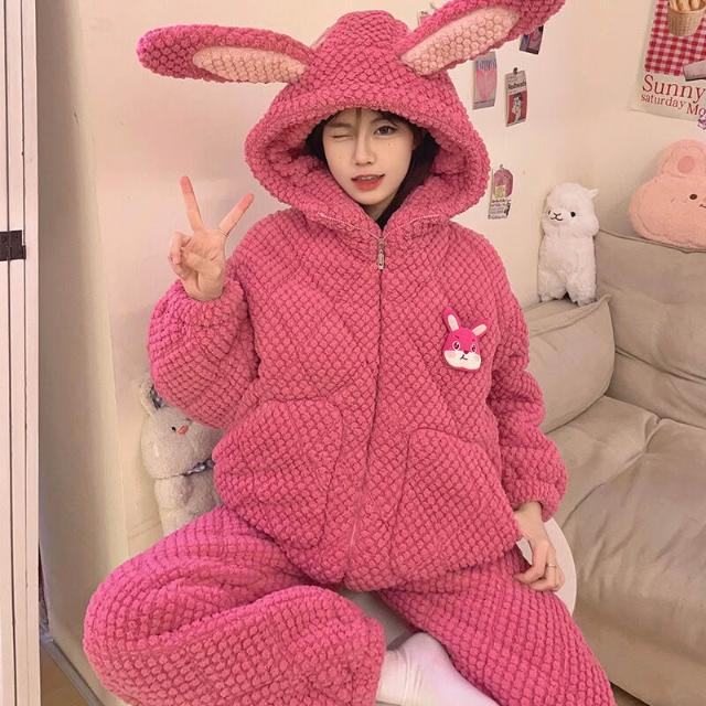 可愛小熊睡衣 睡衣女 連帽保暖居家服 家居服套裝 情侶居家服