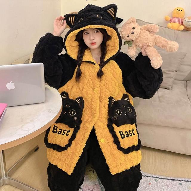可愛小熊睡衣 睡衣女 連帽保暖居家服 家居服套裝 情侶居家服