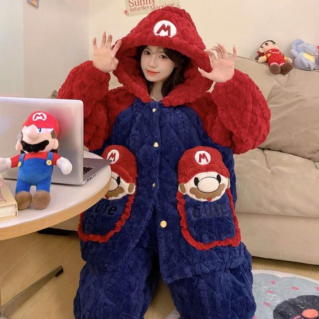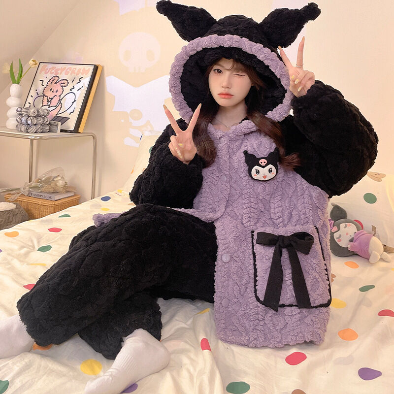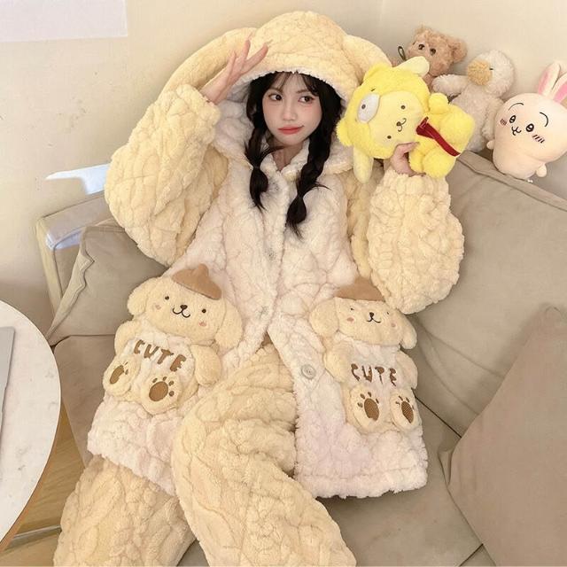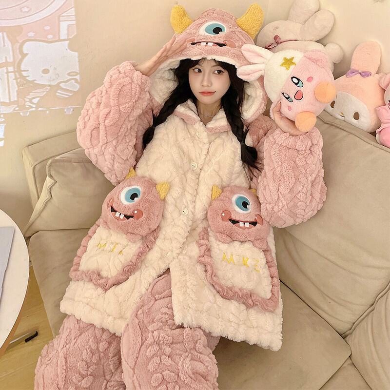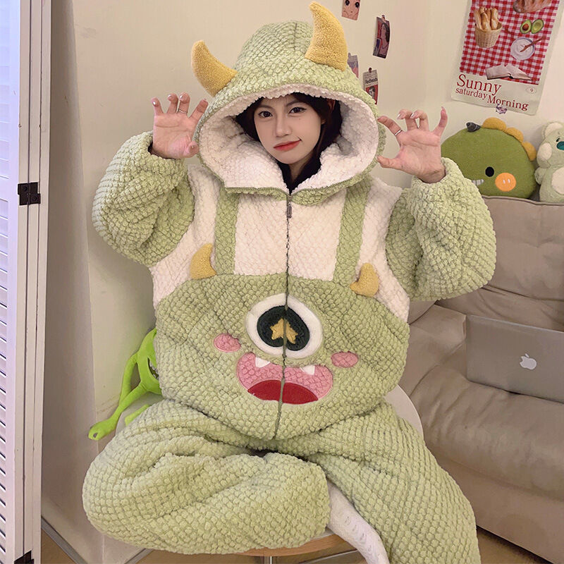可愛小熊睡衣 睡衣女 連帽保暖居家服 家居服套裝 情侶居家服