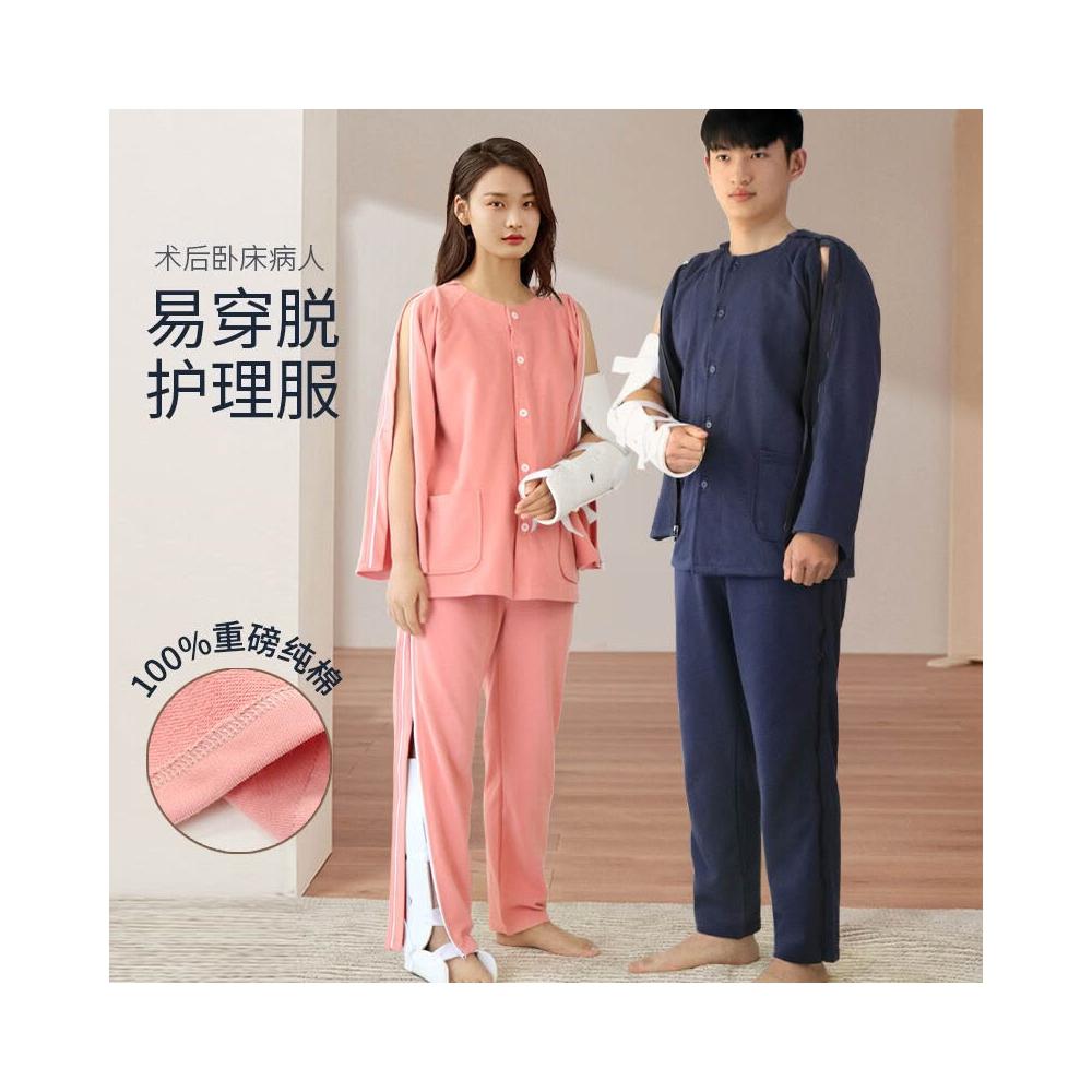 春秋易穿脫護理服胳膊腿骨折術後病號服臥床睡衣針灸理療服