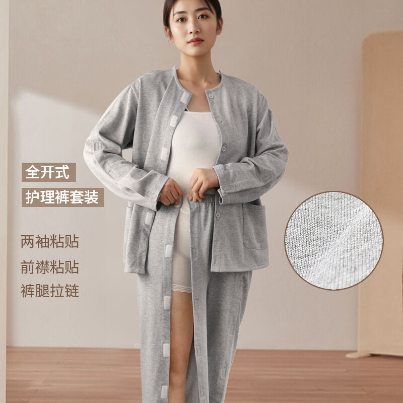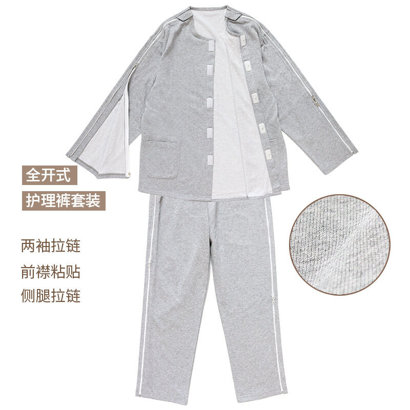 春秋易穿脫護理服胳膊腿骨折術後病號服臥床睡衣針灸理療服