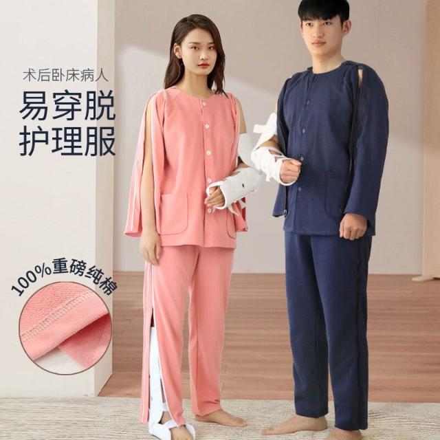 春秋易穿脫護理服胳膊腿骨折術後病號服臥床睡衣針灸理療服