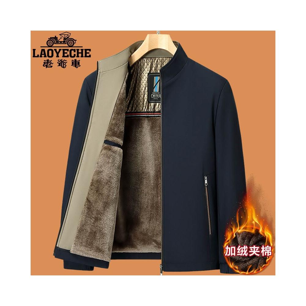 老爺車爸爸秋冬款外套中年加絨加厚夾克男2025新款中老年人棉衣服