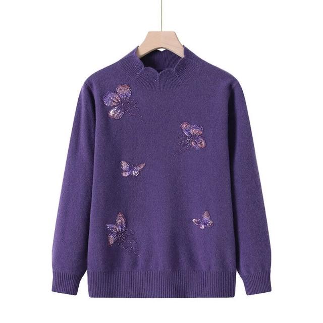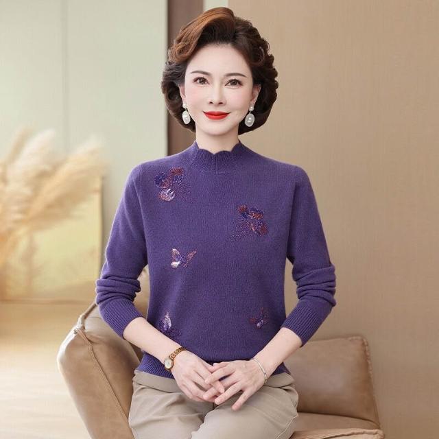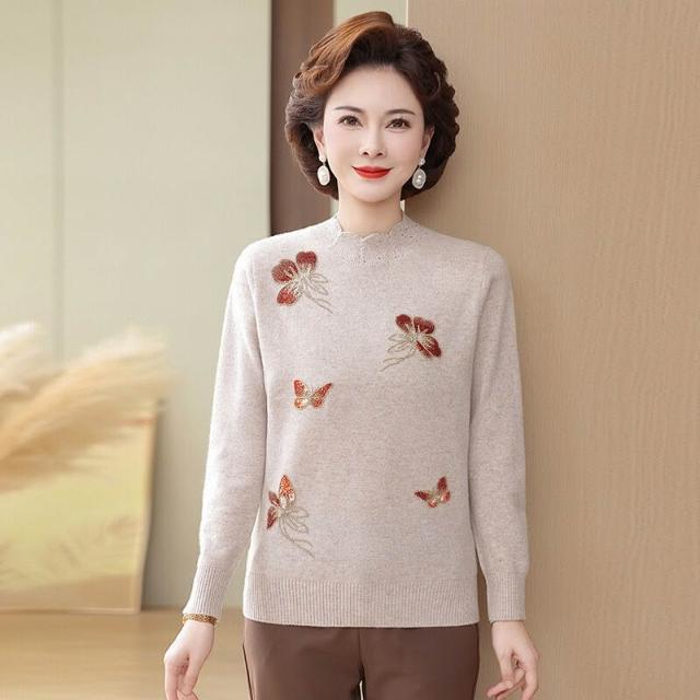 中老年女裝秋冬100%純羊毛打底衫媽媽大碼半高領毛衣女時尚針織衫
