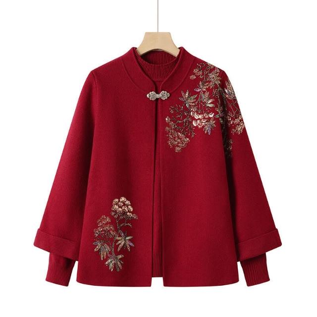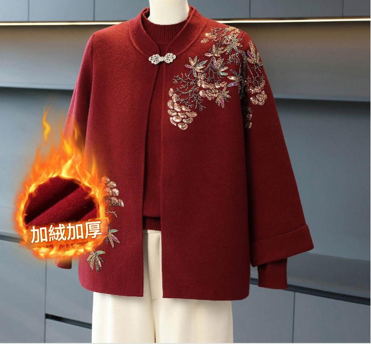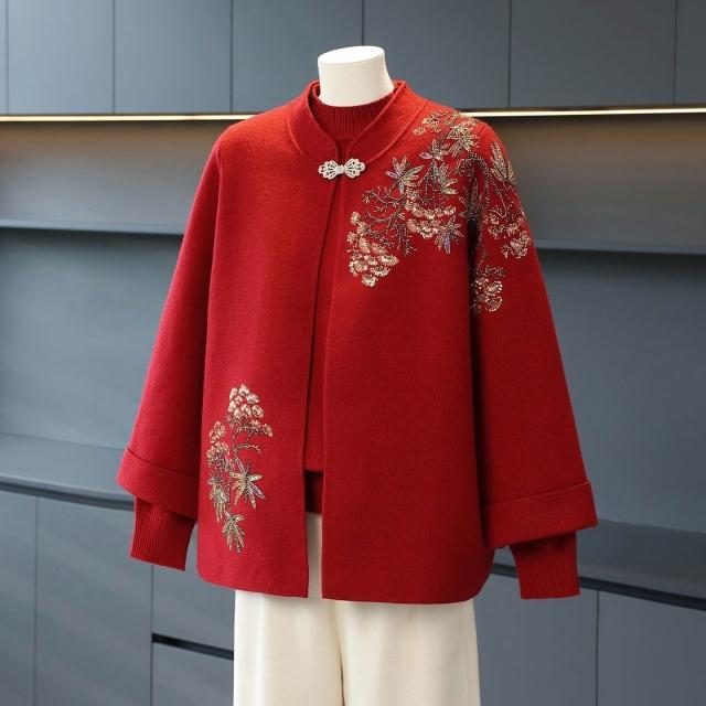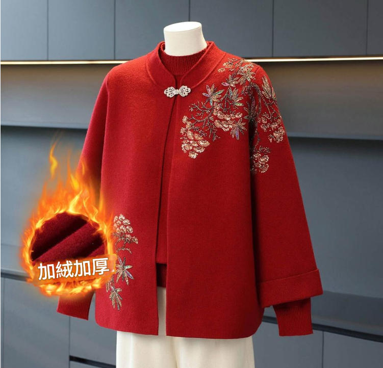 奶奶婚宴禮服兩件套 喜婆婆喜慶上衣套裝 中老年女士秋裝宴會服 媽媽婚宴禮服外套 喜慶中老年兩件套 婆婆宴會禮服上衣