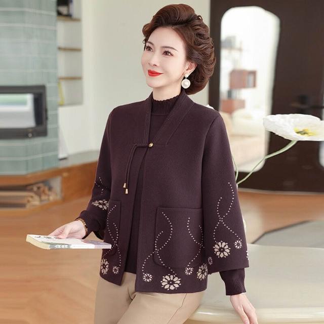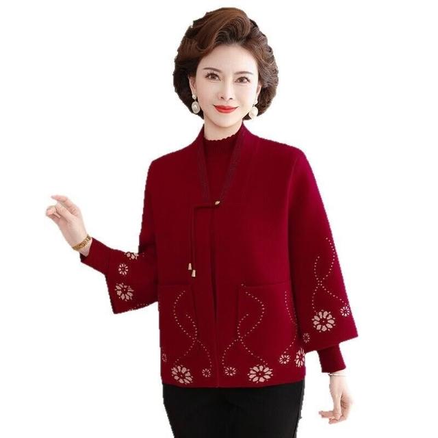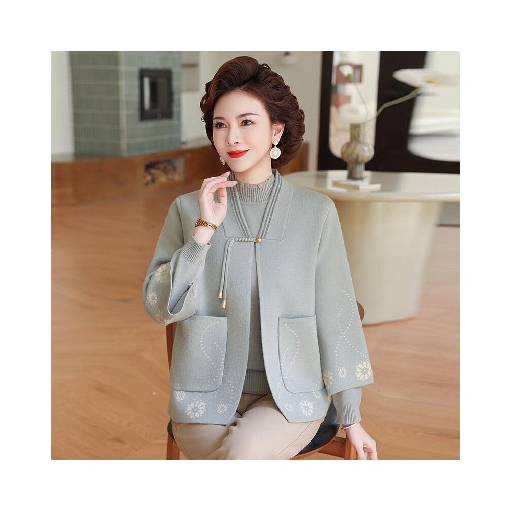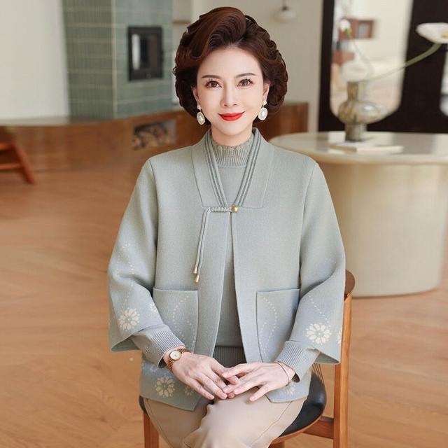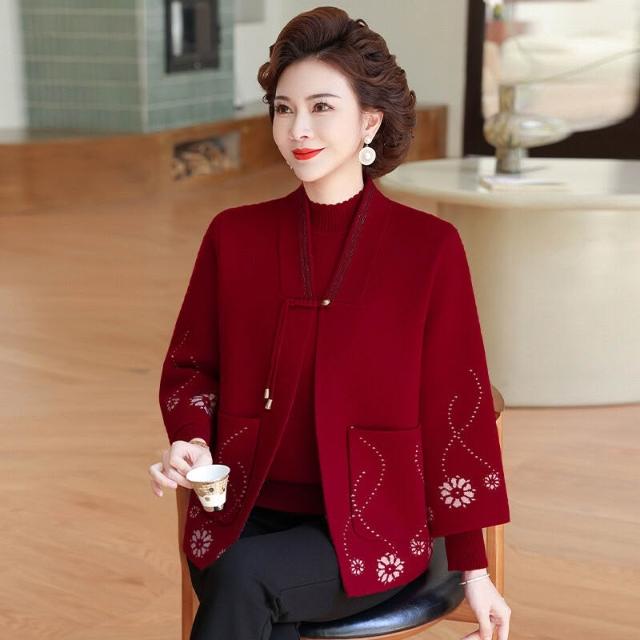 媽媽秋裝針織兩件套中老年女國風開衫外套上衣服喜婆婆結婚宴禮服