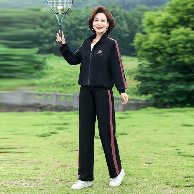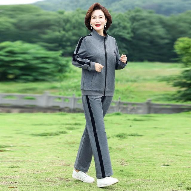 中老年女運動服套裝春秋季中年婦女媽媽裝休閑衛衣外套新款兩件套