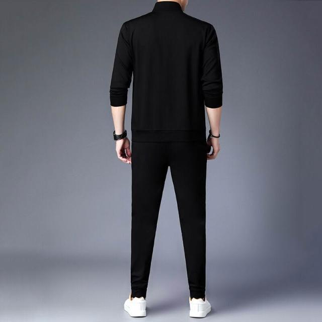 男士立領開衫兩件套2025春秋季新款中年潮流休閑運動夾克套裝男