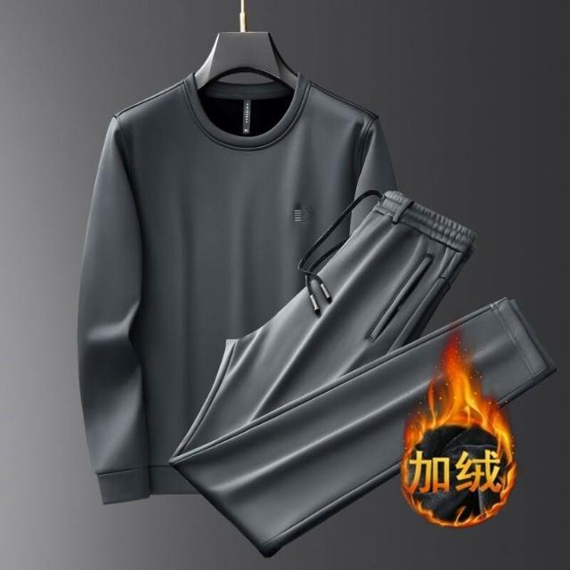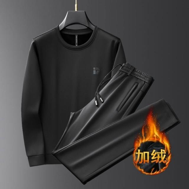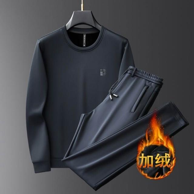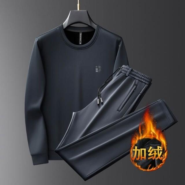 高端休閑套裝男秋冬中年男士運動服套裝加絨衛衣衛褲男裝兩件套03