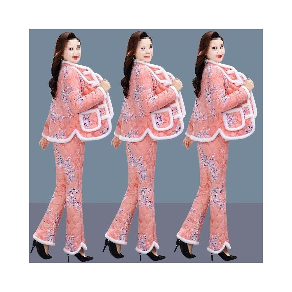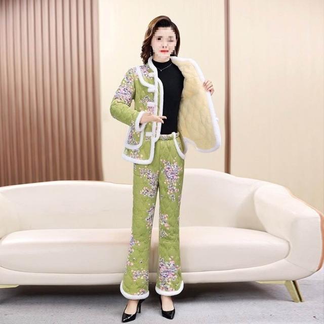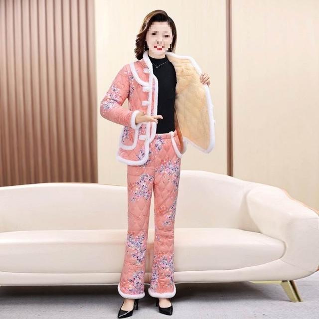 媽媽加絨套裝加厚保暖盤扣棉襖棉褲新款冬季中老年時尚兩件套棉衣