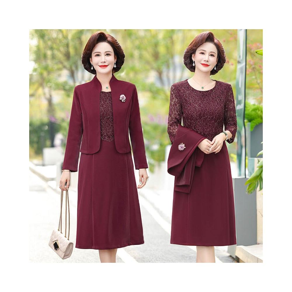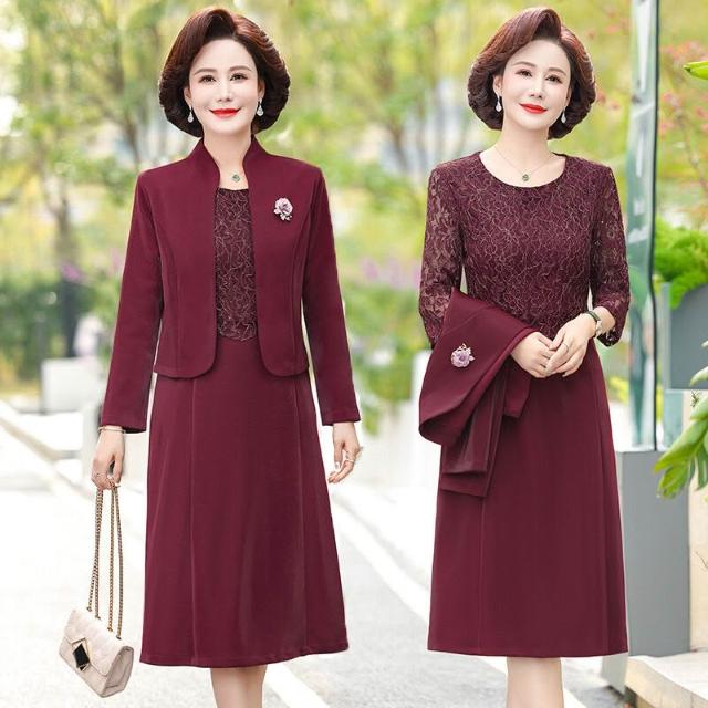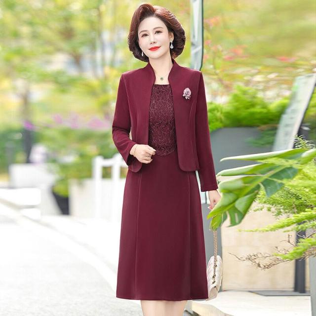媽春裝連衣裙兩件套 中年女士春秋婚禮裙 婚宴氣質媽媽套裝 婚禮喜婆婆禮服 中年女士宴會連衣裙 春秋媽媽婚宴套裙