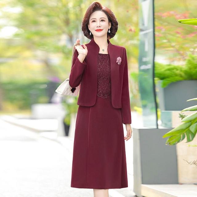 媽春裝連衣裙兩件套 中年女士春秋婚禮裙 婚宴氣質媽媽套裝 婚禮喜婆婆禮服 中年女士宴會連衣裙 春秋媽媽婚宴套裙