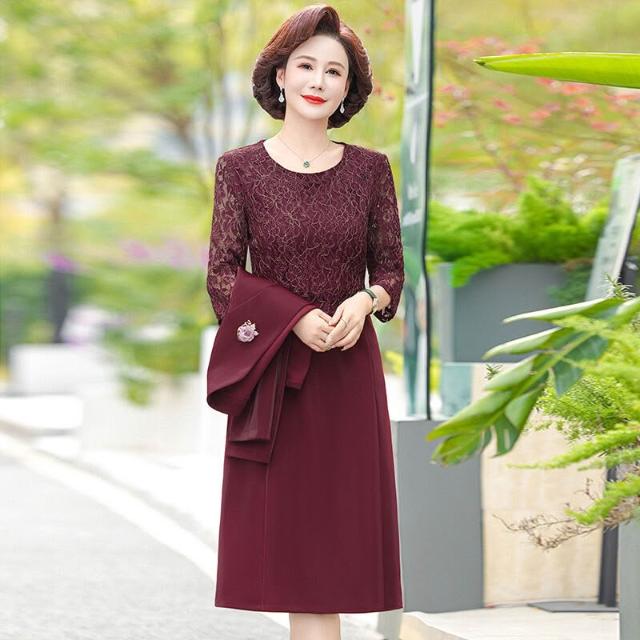 媽春裝連衣裙兩件套 中年女士春秋婚禮裙 婚宴氣質媽媽套裝 婚禮喜婆婆禮服 中年女士宴會連衣裙 春秋媽媽婚宴套裙