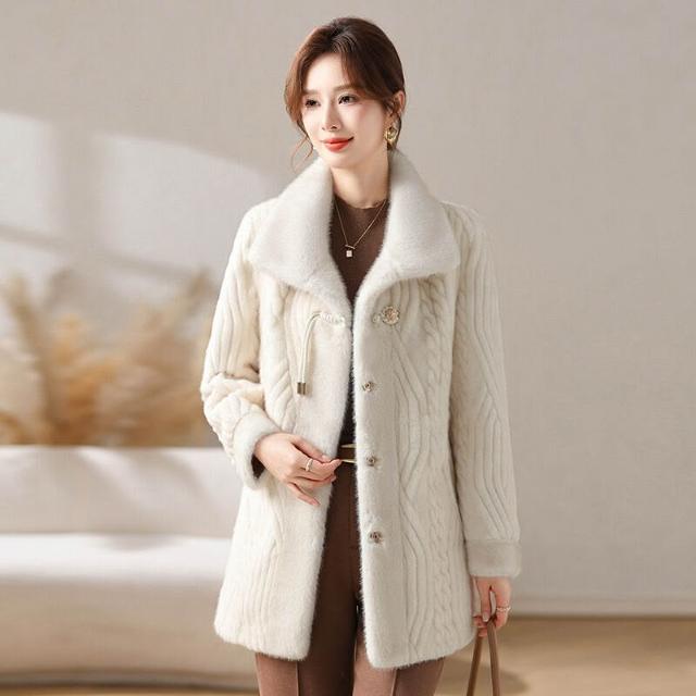 中年女水貂絨大衣 媽媽秋冬仿皮草上衣 加厚大碼貂皮大衣 闊太太氣質皮草 中老年仿水貂絨外套 秋冬媽媽裝皮草