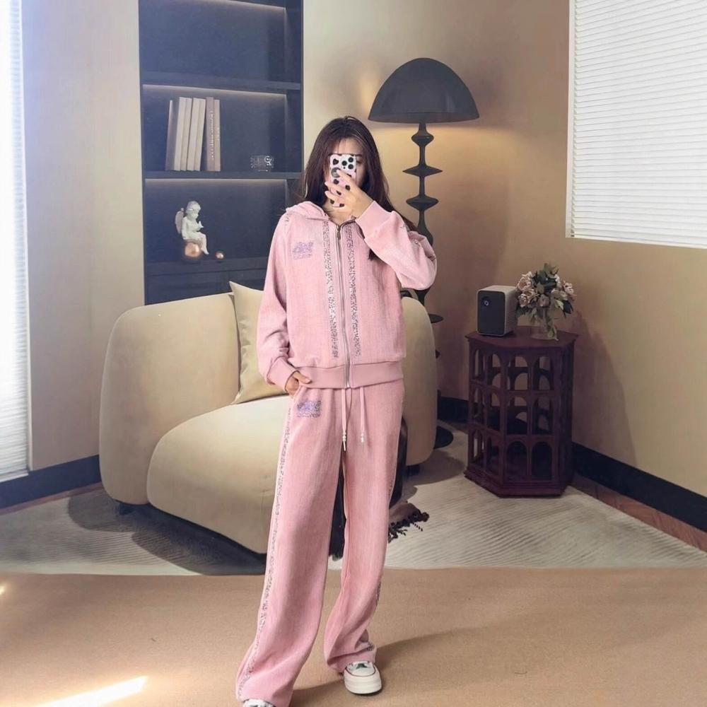 秋季連帽拉鏈顯瘦氣質休閑運動套裝減齡粉色衛衣直筒褲兩件套女裝