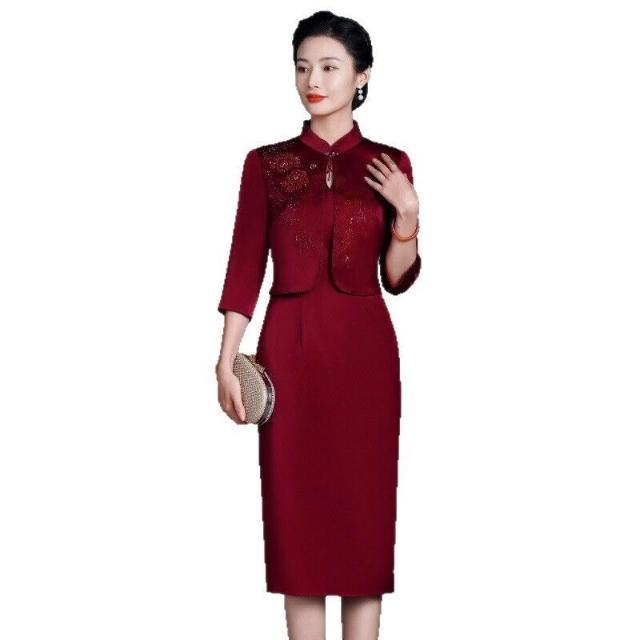 603#新款年輕媽媽裝兩件套媽媽衣服高級感婚禮喜婆婆媽媽裝婚宴禮