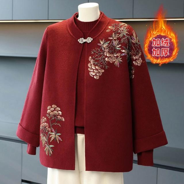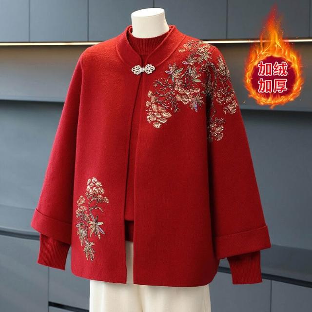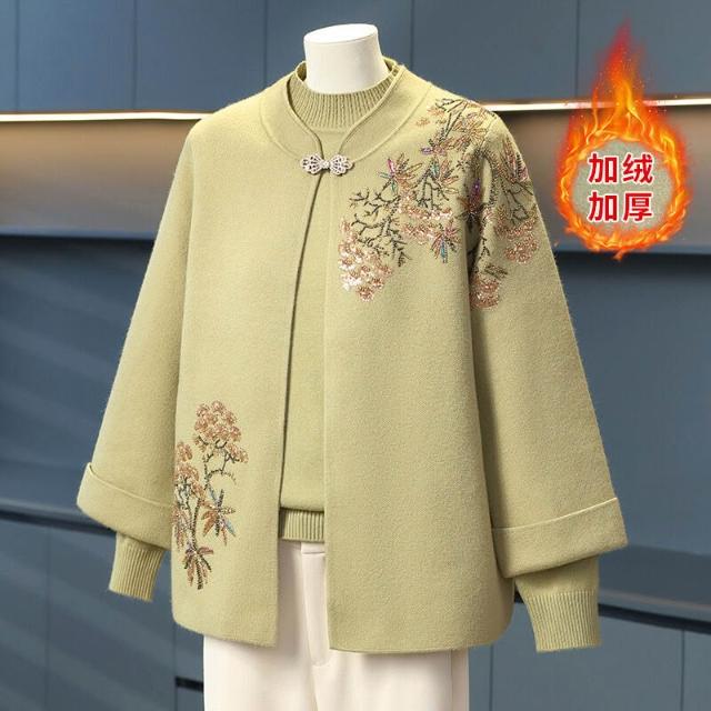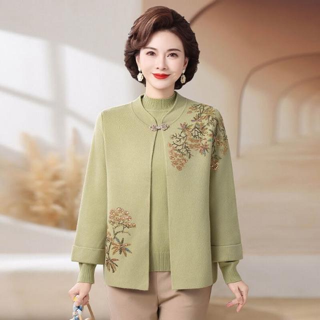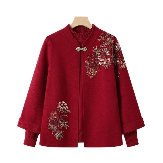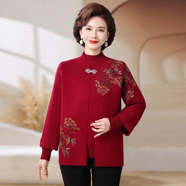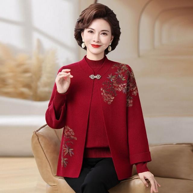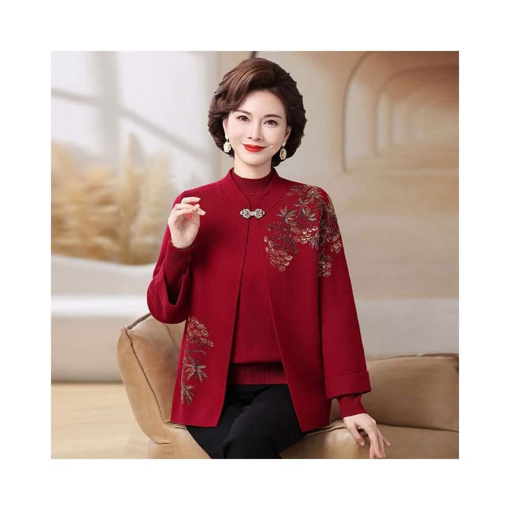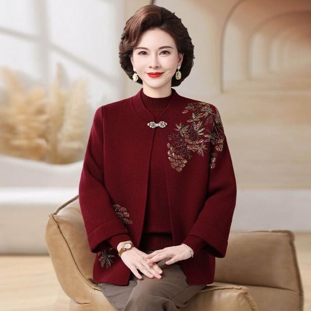 中年媽媽秋季外套中老年女針織毛衣兩件套上衣服喜婆婆結婚宴禮服