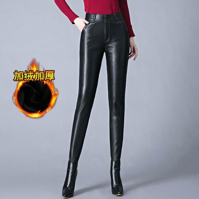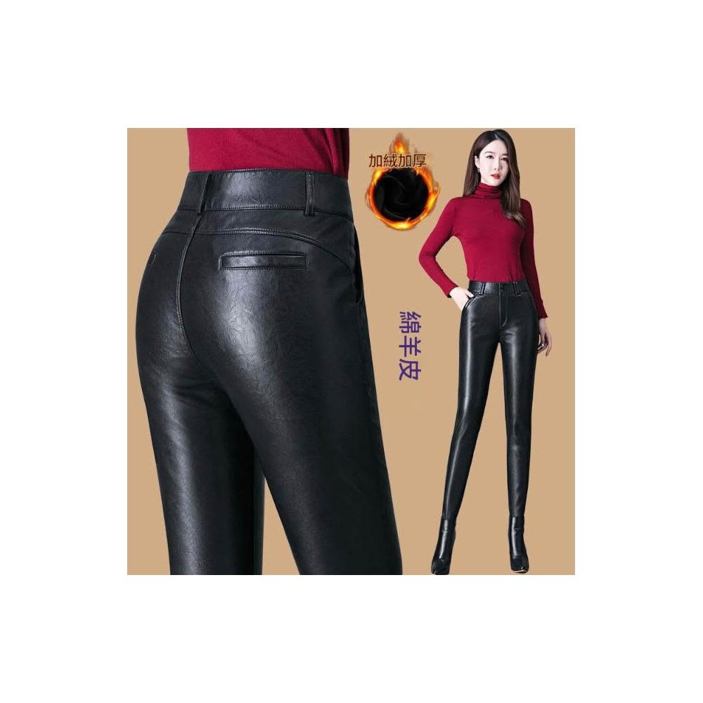 皮褲女 2026 秋冬綿羊皮褲 高腰加絨皮褲 修身彈力鉛筆褲 女士小腳褲 秋冬加絨長褲 綿羊皮高腰長褲 彈力修身褲