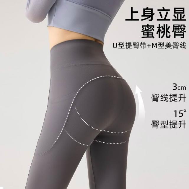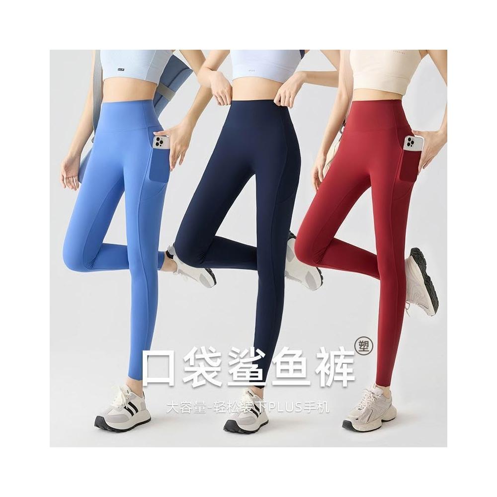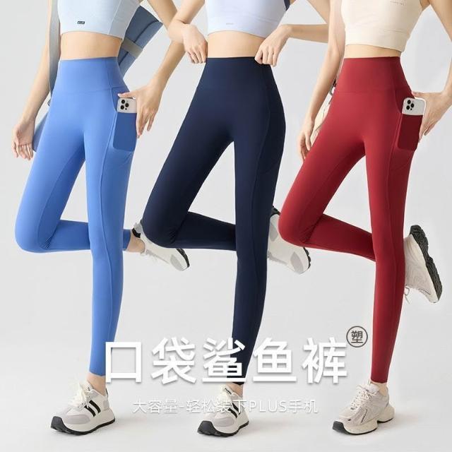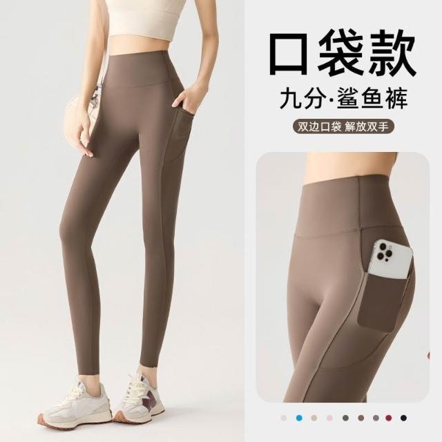 春夏雙口袋九分瑜伽褲女外穿彈力芭比褲裸感蜜桃臀運動健身打底褲