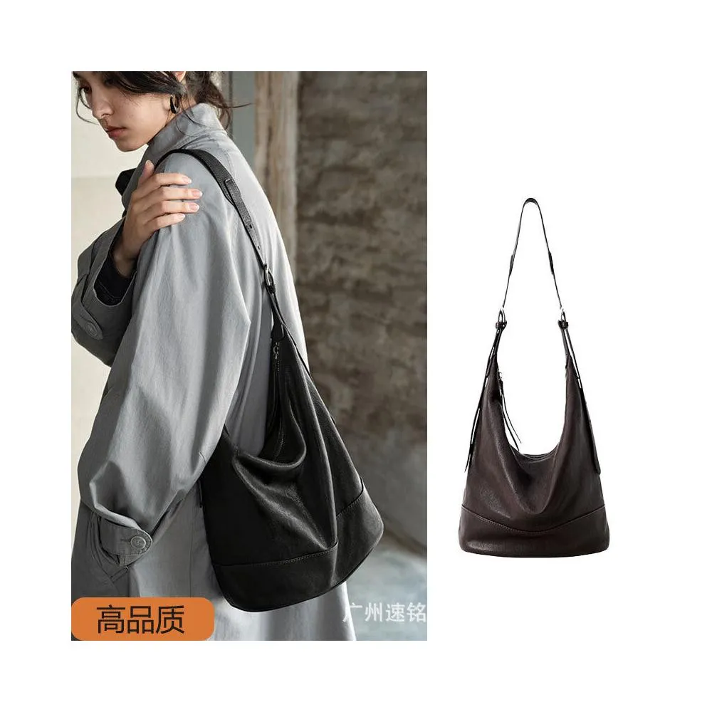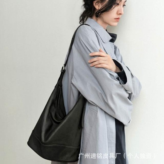 裘真格物系列塌塌包2025新款雙耳水桶包女單肩斜挎大容量通勤包包