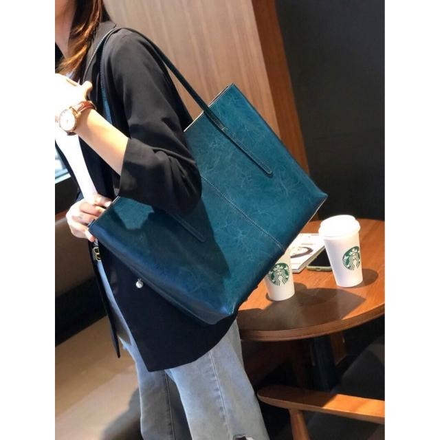 復古牛皮大包包女士包2025新款托特包大容量女真皮百搭通勤單肩包