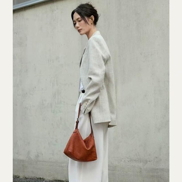 裘真植鞣牛皮腋下hobo包大小號百搭單肩高級感通勤包真皮餃子包女