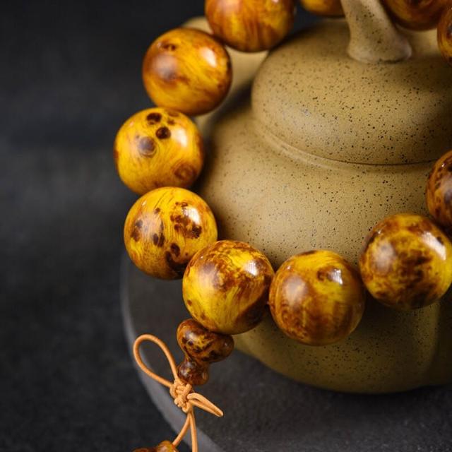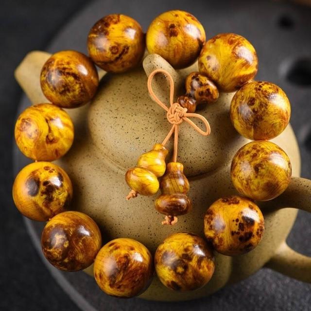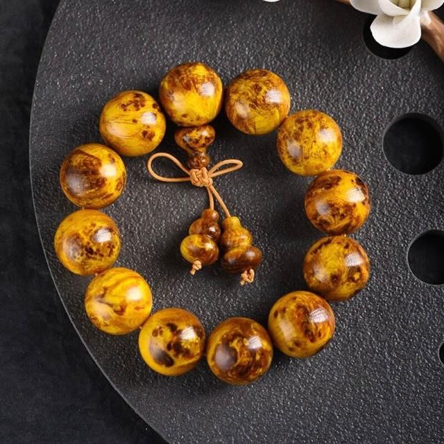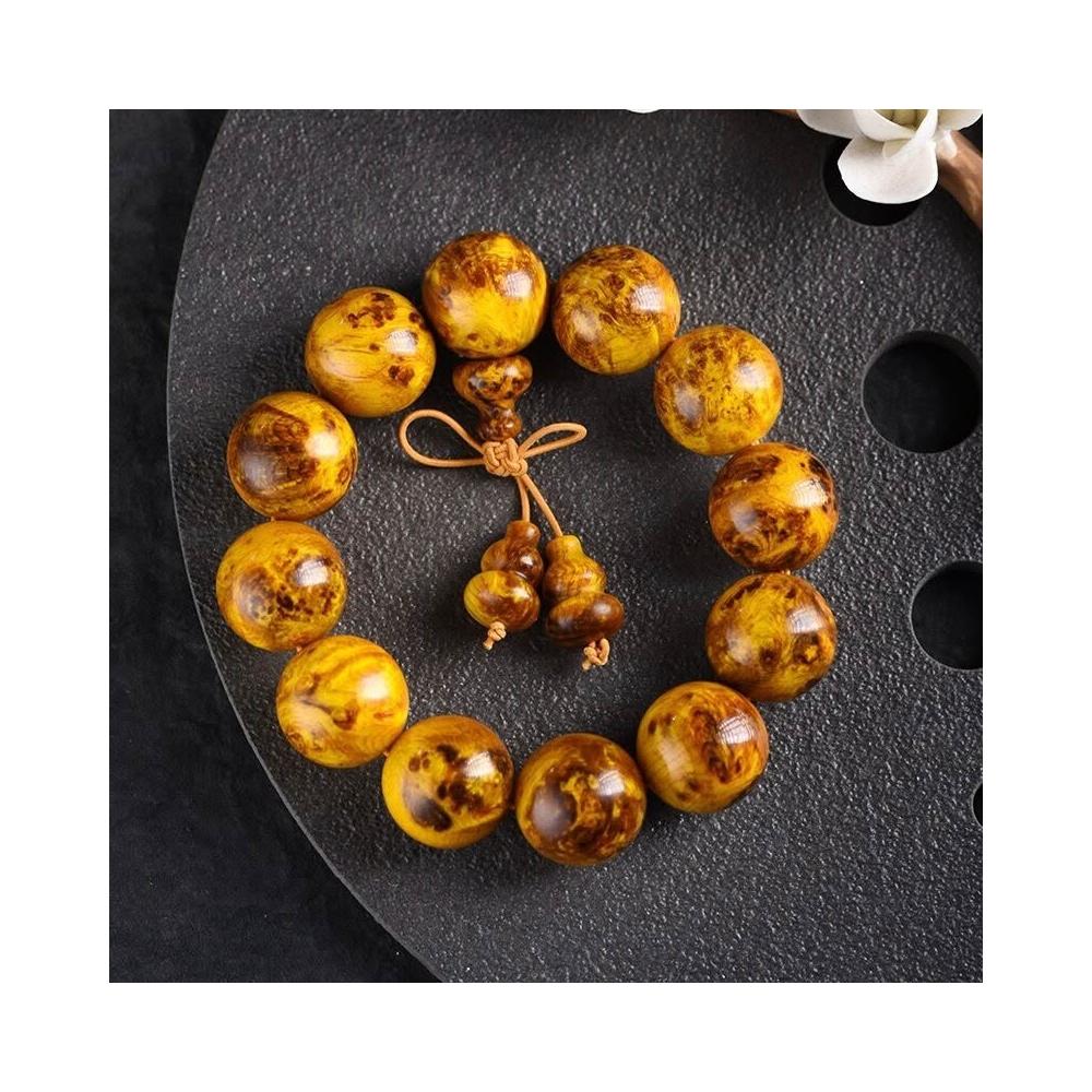 精品高拋北沈香琥珀木瘤疤文玩佛珠手串顆顆透光松明子木珠盤玩