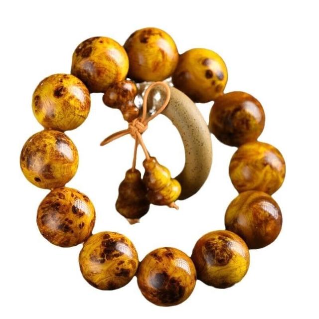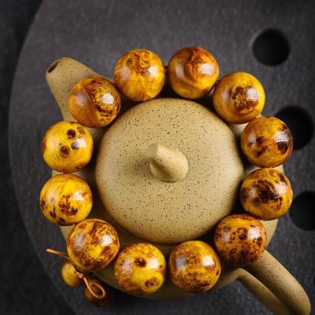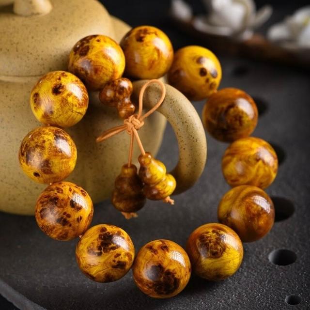 精品高拋北沈香琥珀木瘤疤文玩佛珠手串顆顆透光松明子木珠盤玩