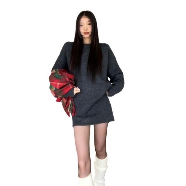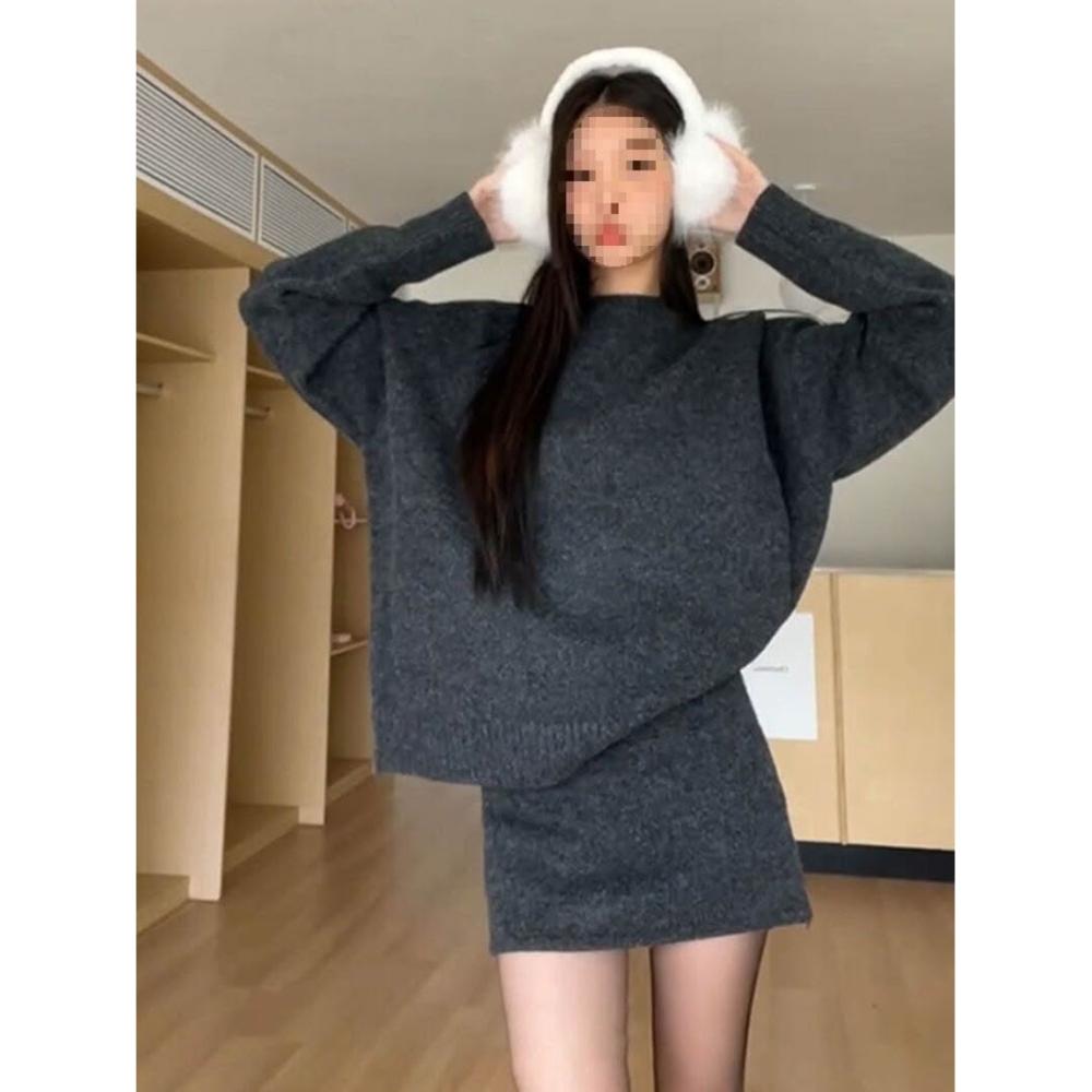 灰色針織套裝連衣裙子女新款秋季韓系氛圍穿搭一整套裝短裙子
