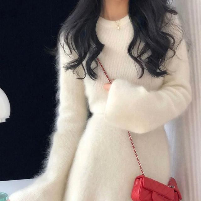 網紅法式溫柔風白色針織套裝女裝秋季新款毛衣半身裙兩件套潮