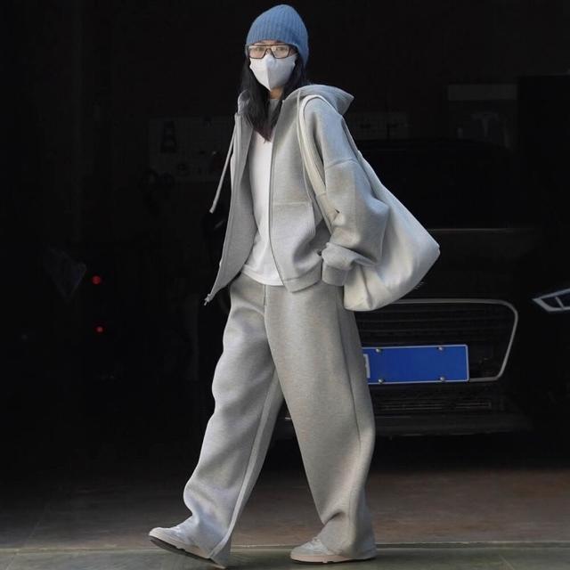 慵懶風簡約白色連帽衛衣休閑運動服套裝女春秋學生韓版寬松兩件套