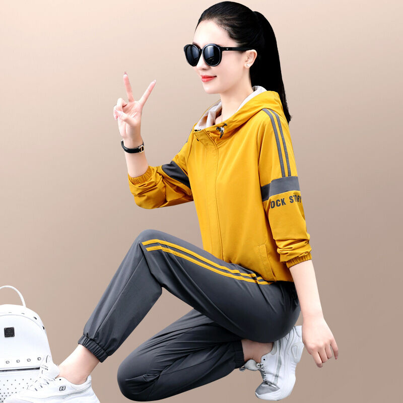 運動服套裝女春秋2025年新款時尚洋氣寬松顯瘦衛衣休閑跑步兩件套