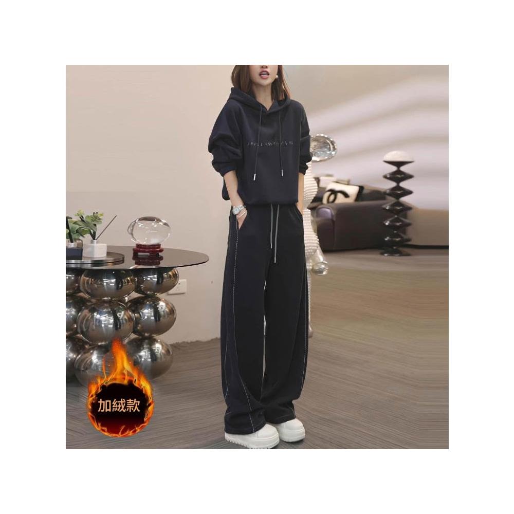 女士時尚減齡闊腿褲套裝 冬季加絨保暖運動套裝 歐貨高級感衛衣闊腿褲 女款休閑減齡兩件套 2026新款加絨運動套裝