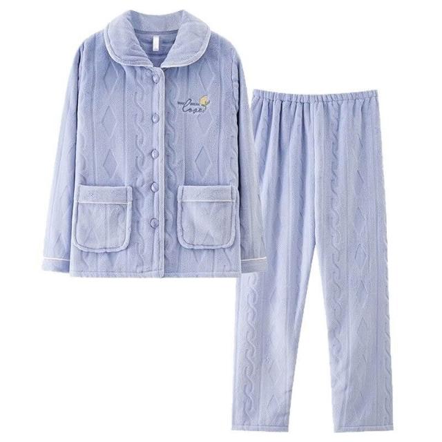 新款珊瑚絨睡衣女秋冬款保暖法蘭絨可外翻領穿女士家居服套裝