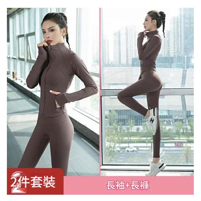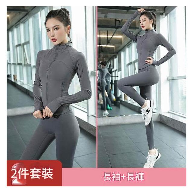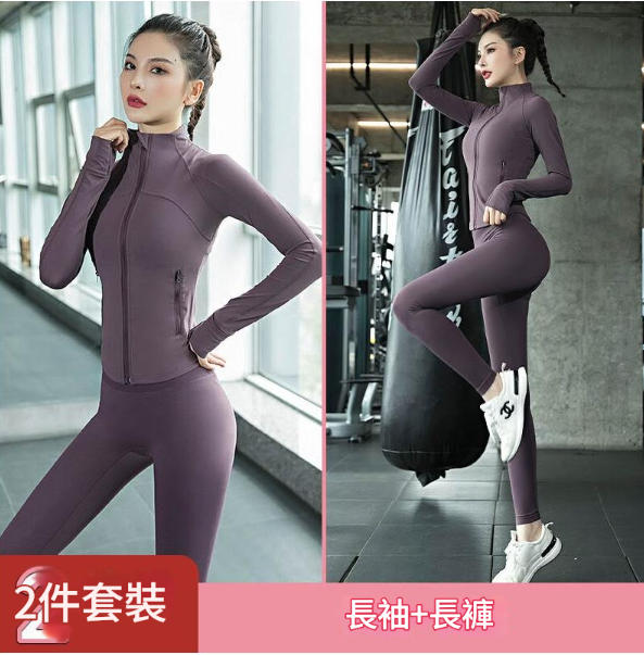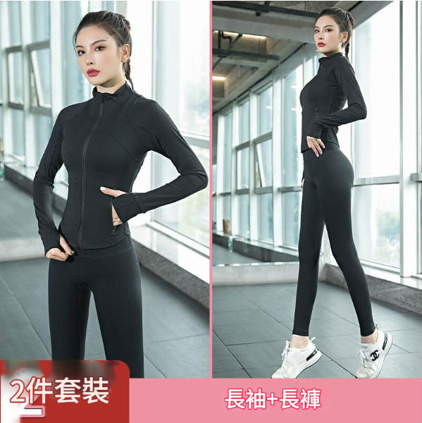 秋冬高級感緊身速幹健身外套女 長袖跑步運動普拉提瑜伽服套裝 顯瘦修身高級感瑜伽健身長袖套裝 秋冬戶外跑步速幹緊身運動外套