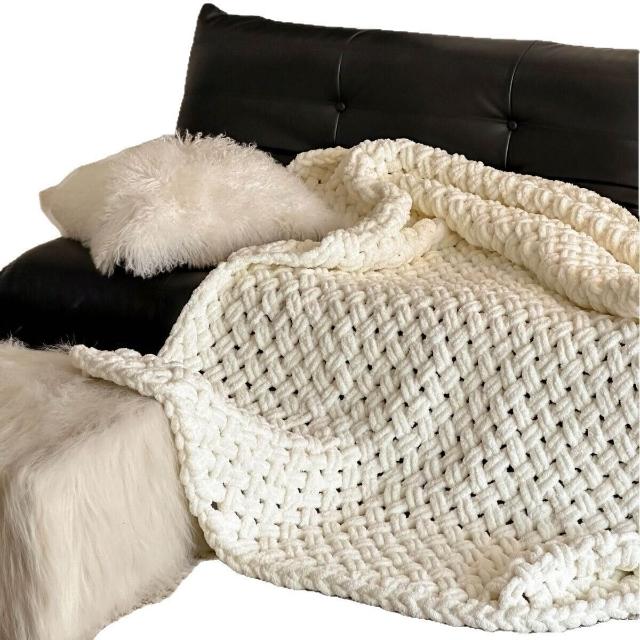 ins北歐手工編織毛線毯子手工針織毛毯沙發蓋毯家居毯臥室床尾毯