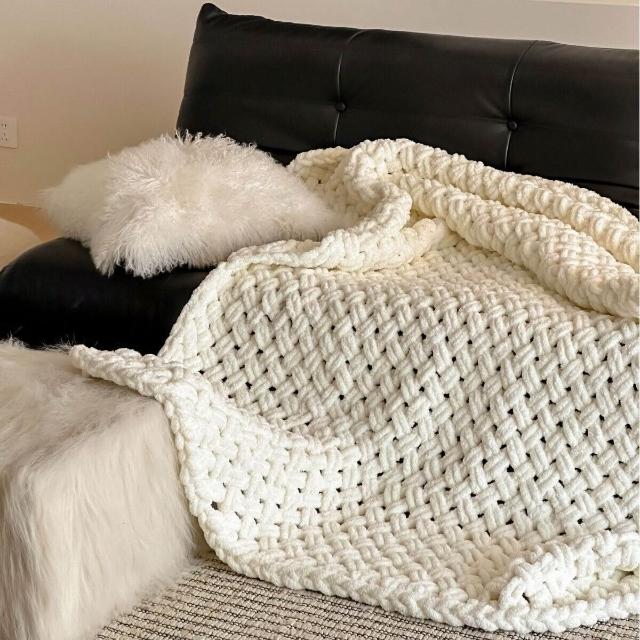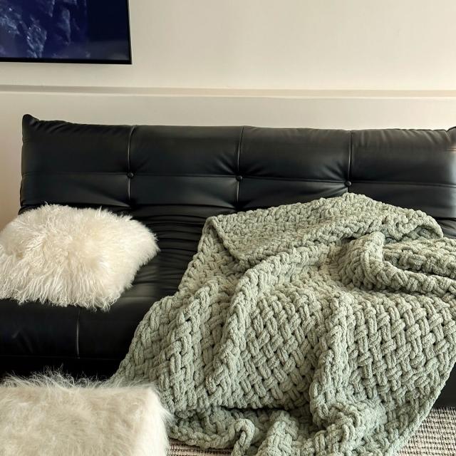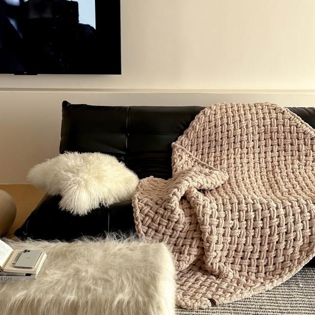ins北歐手工編織毛線毯子手工針織毛毯沙發蓋毯家居毯臥室床尾毯