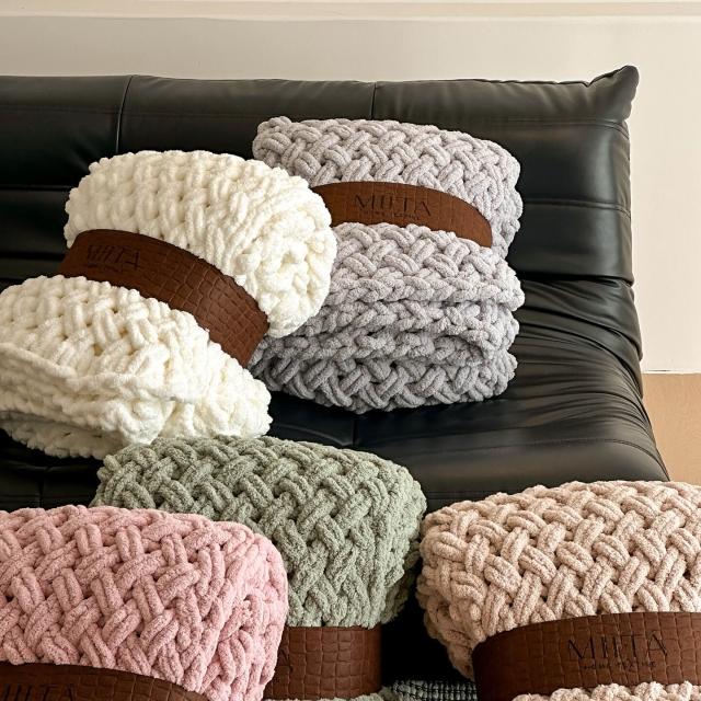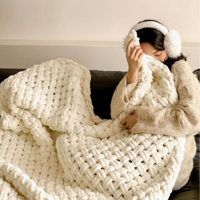 ins北歐手工編織毛線毯子手工針織毛毯沙發蓋毯家居毯臥室床尾毯