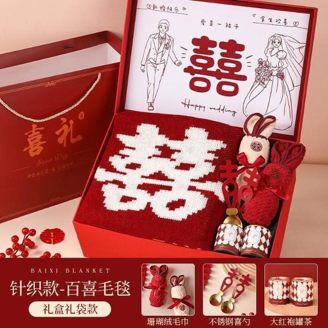 百喜毯結婚禮物實用高級手工新婚禮物新娘訂婚閨蜜禮盒外貿包郵