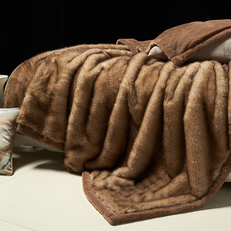 輕奢仿金狐皮草毛毯被子秋冬季加厚保暖雙人珊瑚絨毯子法蘭絨蓋毯