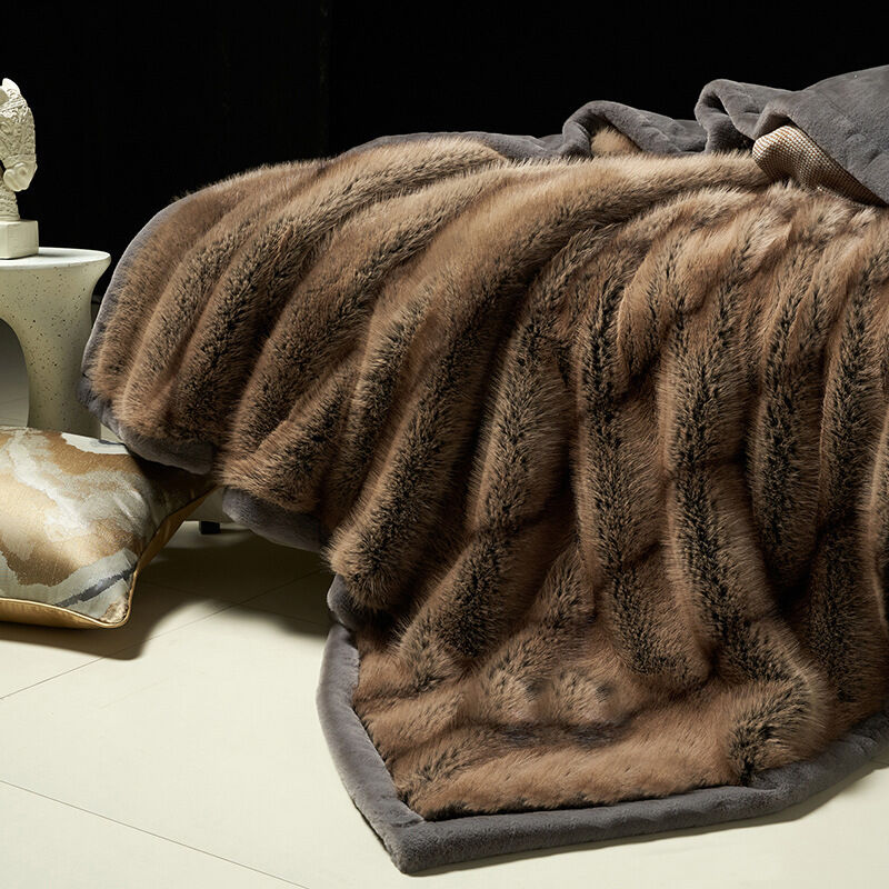 輕奢仿金狐皮草毛毯被子秋冬季加厚保暖雙人珊瑚絨毯子法蘭絨蓋毯