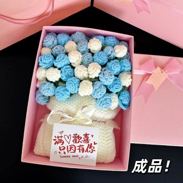 漸變玫瑰花束毛毯子成品手工編織鮮花朵披肩新婚閨蜜生日禮物女生